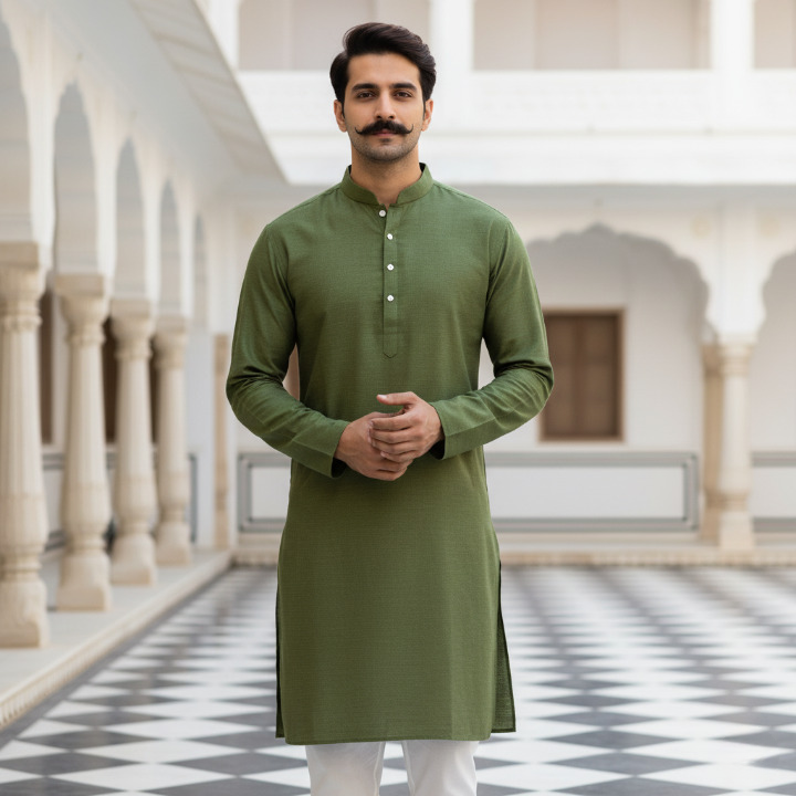 Olive Green Kurta Pajama for Men – Stylish Cotton Ethnic Wear for Weddings & Festive Events